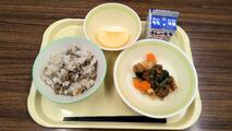 「かて飯」は秩父地方の郷土料理です。特に米の生産量が比較的少ない地域で、ご飯の量を増やすために大根、ごぼう、人参、干ししいたけなどの野菜やきのこ、油揚げなどを混ぜて炊いた料理とされています。給食では、油揚げ、ちくわ、凍り豆腐、鶏肉、干ぴょう、ごぼう、干し椎茸、人参など、たくさんの具を使っています。