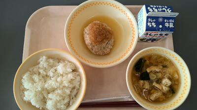 ・ご飯 ・味噌汁 ・ハンバーグのおろしソースかけ ・牛乳 です。
