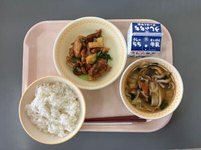 ・ご飯 ・煮ぼうとう ・豚肉とカシューナッツの揚げ煮 ・牛乳 です。