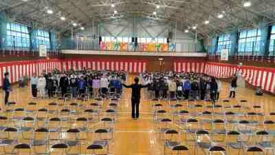 この時期にしては珍しく雪が降り、冷え込みが厳しい中での予行となりましたが、卒業生・在校生とも厳かな式にふさわしい立派な態度で練習に臨むことができました。いよいよ24日(月)を待つのみです。