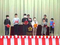 予行終了後、優良児童表彰、体育優良児童表彰、6年間皆勤賞の表彰を行いました。