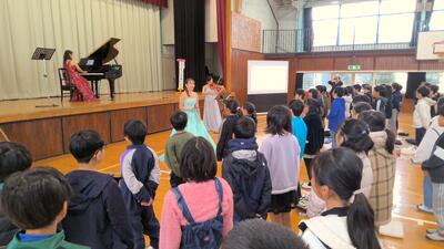 前半・後半の合間には、子どもたちの質問にたくさん答えてくださったり、最後には子どもたちがよく知っている「Believe」を一緒に歌ったりもしました。美しい音色と歌声は、南っ子たちの心に強く響いたようでした。「カルテット・ペルヴォーイ」の皆様、本日は誠にありがとうございました。