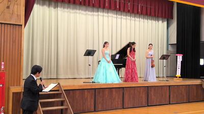 11月20日(水)3・4校時、「カルテット・ペルヴォーイ」の皆様にお越しいただき、「クラッシックは美しい!」の出前講座を行っていただきました。ピアニスト・ヴァイオリニスト・ソプラノ歌手の3名で、たくさんの曲を披露してくださいました。