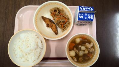 ・ご飯 ・味噌汁 ・いわしの生姜煮 ・浅漬け ・牛乳 です。