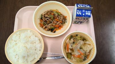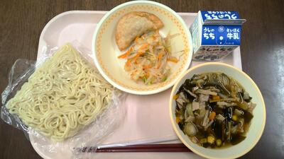 ・わかめラーメン ・手作り揚げ餃子 ・白菜のおひたし ・牛乳 です。