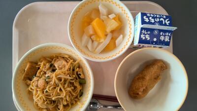 ・ミーゴレン ・ウインナーのフリッター ・杏仁豆腐 ・牛乳 です。