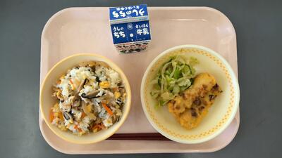 11月4日(火) 今日の給食 投稿: 南小 管理者 (11/04) カテゴリー: 今日の給食 11月4日(火) 本日の献立は ・あぶたま寿司 ・竹輪のもみじ揚げ ・キャベツときゅうりの和え物 ・牛乳 です。 油揚げと卵を使った「あぶたま寿司」。他にも小松菜、人参、こんにゃく、しいたけなど具沢山の寿司です。今日もおいしくいただきます。 ※竹輪のもみじ揚げは、1~3年生は1本、4~6年生は2本になります。 Tweet -