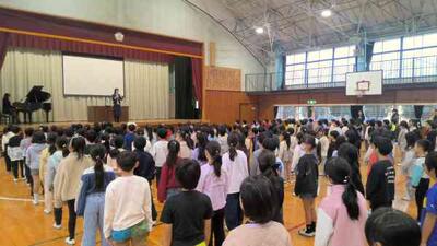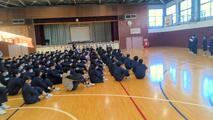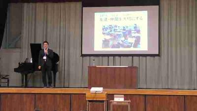 全校で校歌を歌った後、第2・4学年の代表児童が2学期を振り返り、作文を発表しました。今学期頑張ったことや、これから先を見据えた目標など、2人とも大きな声ではきはきと上手に発表することができました。