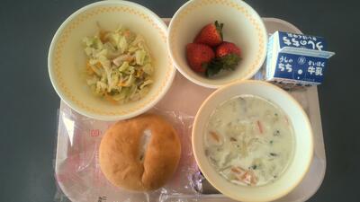 1月16日(金) 今日の給食 投稿: 南小 管理者 (12:30) カテゴリー: 今日の給食 1月16日(金) 本日の献立は ・ライスボールパン ・シーフードのクリーム煮 ・鶏肉とキャベツのソテー ・いちご🍓 ・牛乳 です。 チーズが濃厚な「クリーム煮」。今日はいか、帆立を具材に使用した「シーフード」のクリーム煮です。 季節の果物「いちご🍓」(1~4年生は2個、5~6年生は3個)と一緒に、おいしくいただきます。 Tweet -