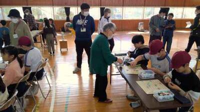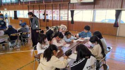 低学年・中学年・高学年に分かれて、普段地域の高齢者の皆さんと行っている「脳トレ」の課題に取り組んでいました。手先を使うものや、計算問題、数字のマグネットを決められた順に並べるものなど、いろいろな「脳トレ」にチャレンジしていました。中には、同じ課題を友達と競い合って取り組む姿も見られました。