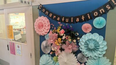卒業を祝う素敵な装飾で 溢れています