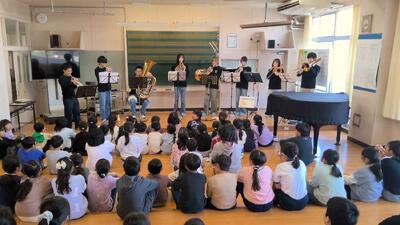 金管楽器や弦楽器の生演奏を初めて聴いた児童も多く、興味深く鑑賞する姿が印象的でした。