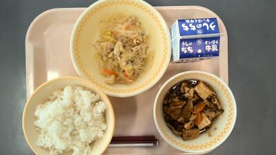 ・ご飯 ・ジャージャン豆腐 ・鶏肉と春雨の炒め物 ・牛乳 です。