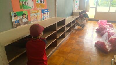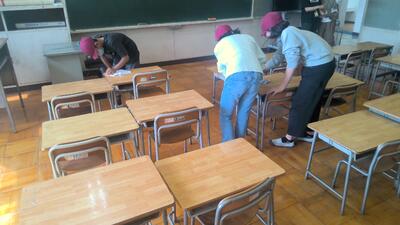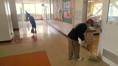 新6年生が教室や式場をピカピカに掃除しました。